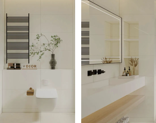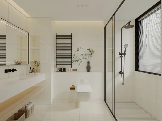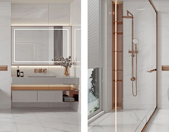 暖色系的浴室,低飽和度的色溫,克羅伊淺灰色調(diào)余韻深遠(yuǎn),上墻應(yīng)用更溫暖,拂走雜亂思緒,令用戶心安,提升衛(wèi)浴空間的和諧性與美觀性。
